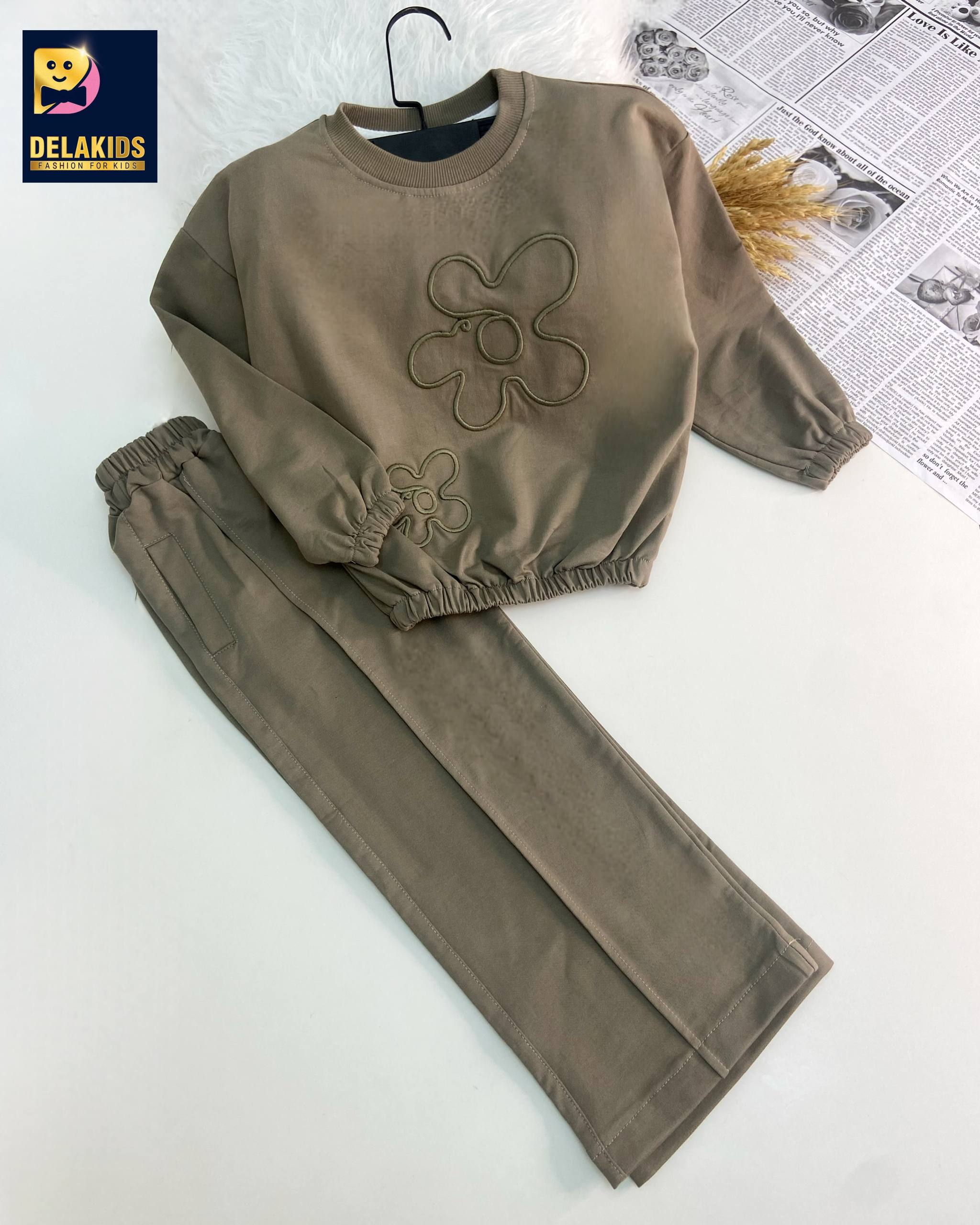 ست کراپ و شلوار دخترانه پاگو طرح گل مناسب 3 تا 9 سال کد 102