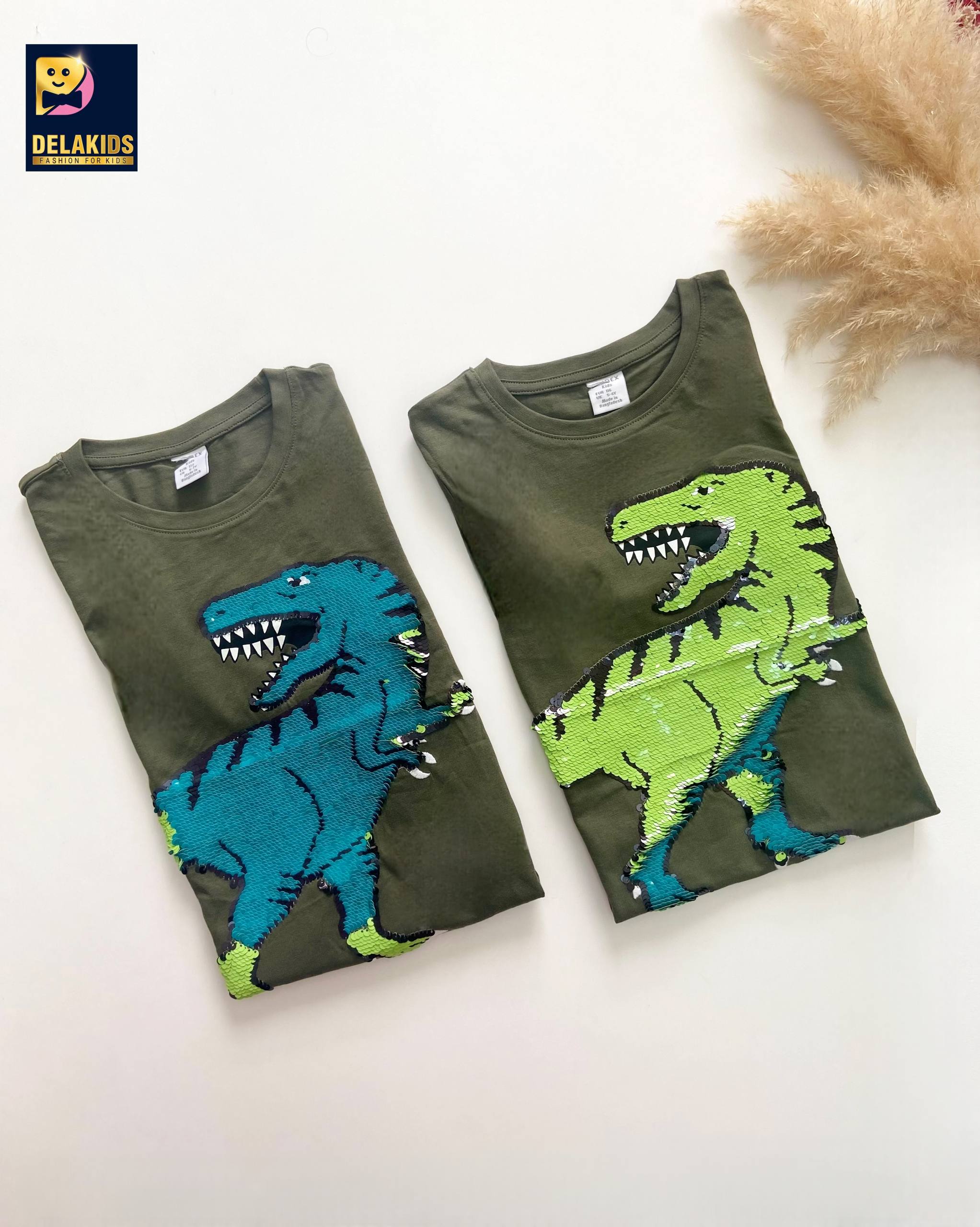 بلوز طرح دایناسور نخ پنبه نرم با پولک‌دوزی کد o72