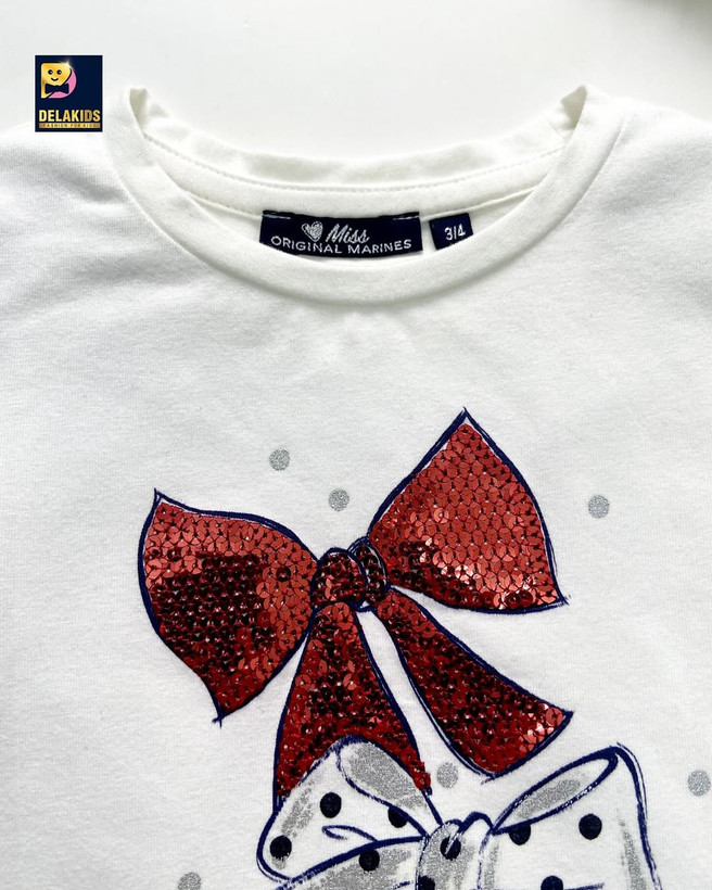 بلوز سفید دخترانه وارداتی از جنس نخ پنبه بسیار با کیفیت با حالت کشسانی که به کودک حس راحتی و نیز آزادی حرکت می دهد. خیلی نرم و لطیف ، با طرح پاپیون زیبا که هم پولک دوزی شده و هم شاین دارهست، تنخور خیلی راحت، مناسب استفاده در منزل و مهمانی.
